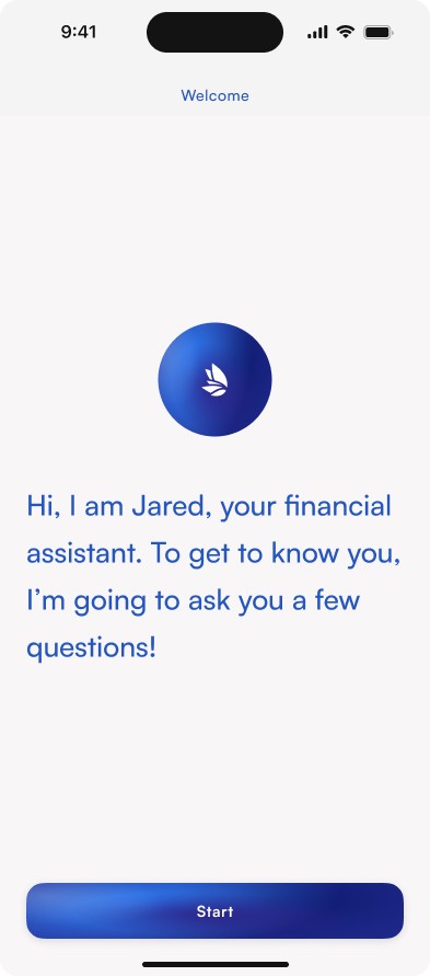 The first version looked promising but left users unsure what to do next. The assistant surfaced information outside the core journey, goal selection felt abstract, and key tasks were buried. Outcome: people did not immediately see how Jared would move them toward a concrete financial objective.